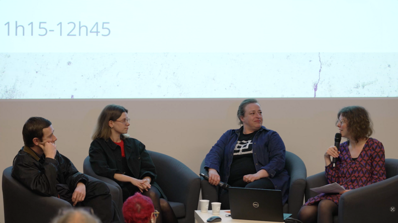À la table ronde de l'après-midi, consacrée aux pratiques de commissariat d’exposition, nous avons eu le plaisir d’accueillir Aleteïa - qui avait présenté Égotarium au musée des Beaux-Arts de Nancy lors des RUN 2024 - , co-commissaire de l'exposition Banlieues chéries au Musée de l'histoire de l'Immigration, ainsi que Gaël Lefeuvre, directeur artistique et artiste plasticien, et Julie Guinamant, responsable de projet et assistante d’artistes.